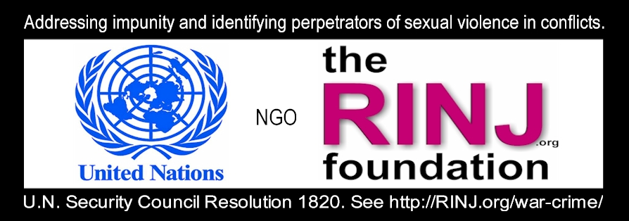 The RINJ Foundation as an International Non-Government Organization relies on six United Nations' resolutions and in particular Res. 1820 (see below) in declaring its evidence-gathering mandate targeting any combatants who commit acts of gender-based violence in situations of armed conflict (war).